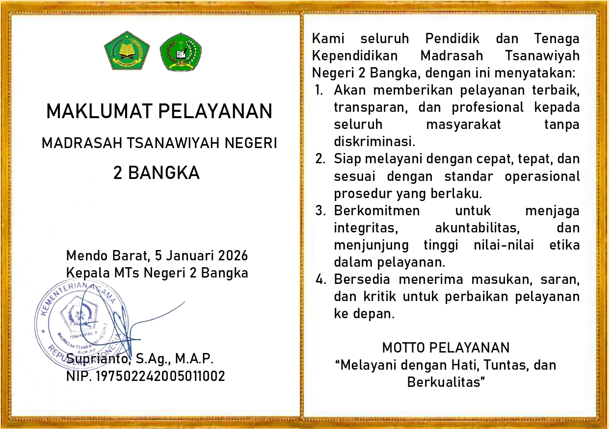 Maklumat Pelayanan MTs Negeri 2 Bangka
