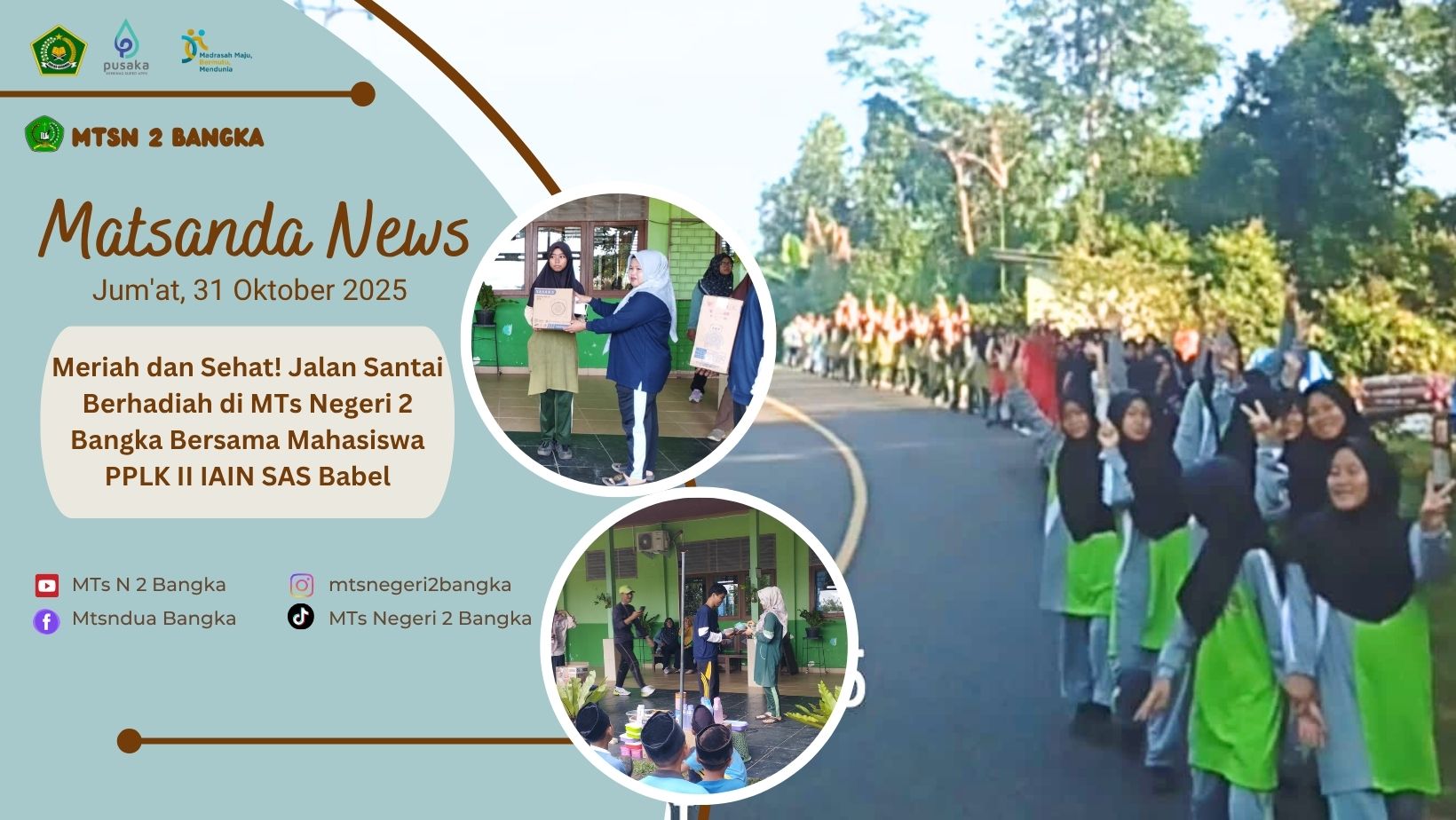 Meriah dan Sehat! Jalan Santai Berhadiah di MTs Negeri 2 Bangka Bersama Mahasiswa PPLK II IAIN SAS Babel
