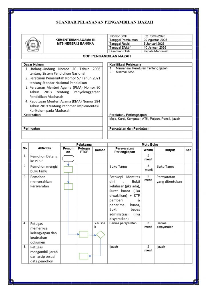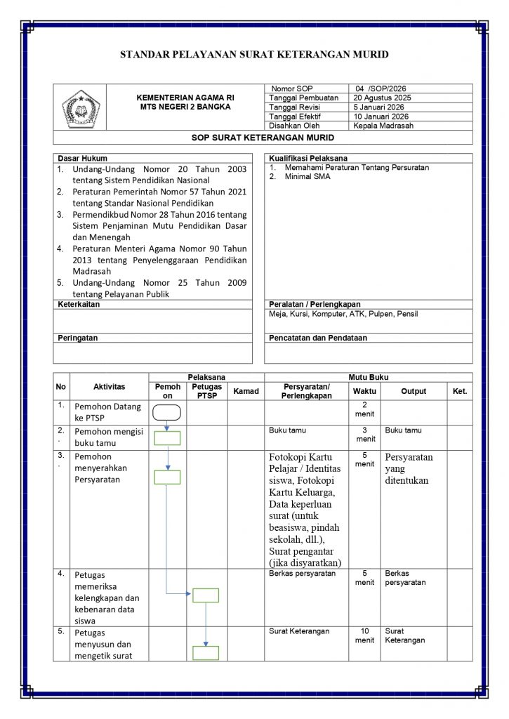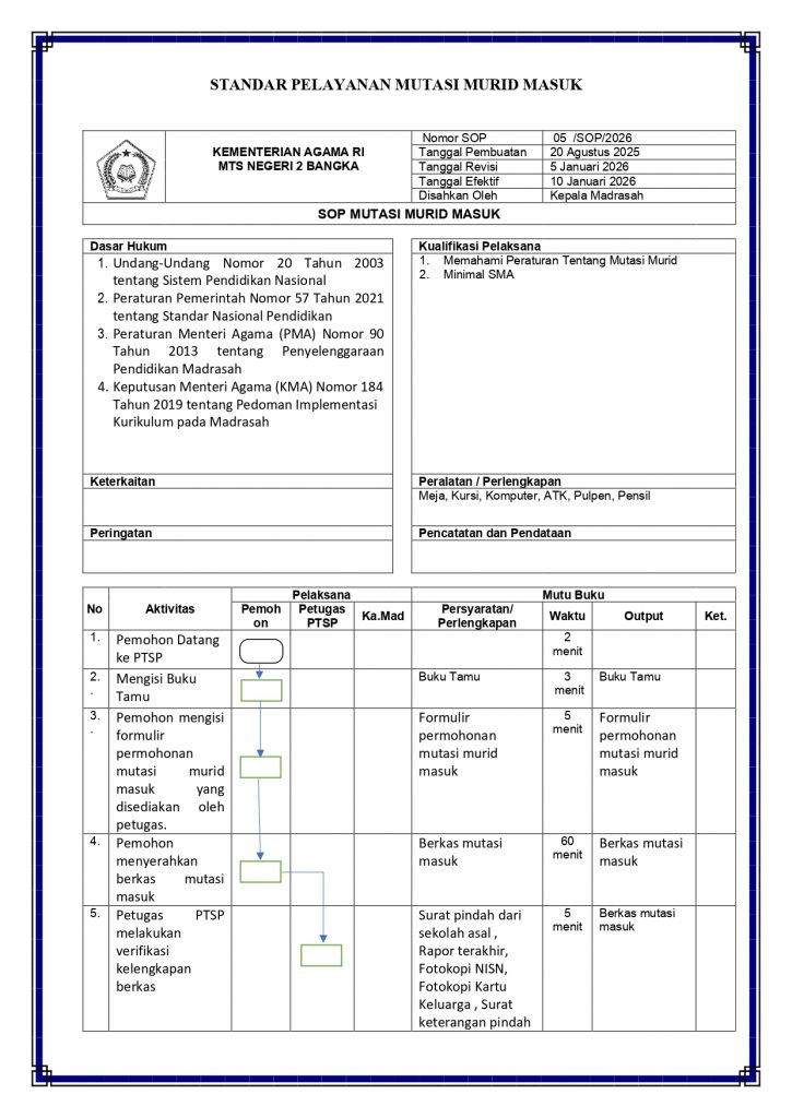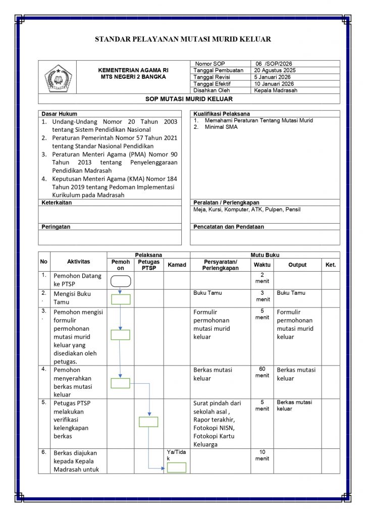 Matsanda NewsStandar PTSP MTs Negeri 2 Bangka admin2 minggu ago01 mins Navigasi pos Previous: Alur Pelayanan PTSP MTs Negeri 2 BangkaNext: Police Goes to School: Pelajar MTsN 2 Bangka Antusias Ikuti Sosialisasi Tertib Berlalu Lintas Tinggalkan Balasan Batalkan balasanAlamat email Anda tidak akan dipublikasikan. Ruas yang wajib ditandai *Komentar * Nama * Email * Situs Web Simpan nama, email, dan situs web saya pada peramban ini untuk komentar saya berikutnya.